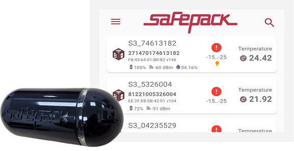 Данные передаются в мобильное приложение SafePack по Bluetooth.